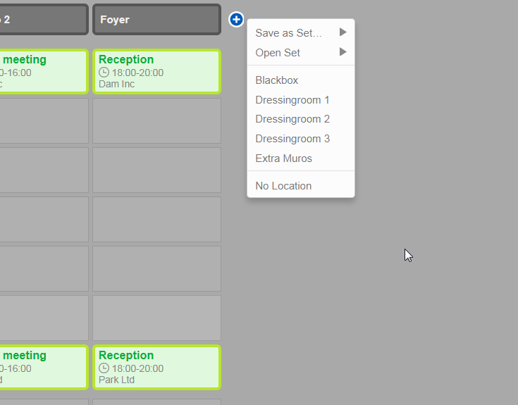 - When you open the event calendar, Yesplan will only show the first thirty locations. Please take this into account if your location set contains more than thirty locations: you’ll need to call up the set manually after opening the event calendar.