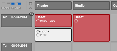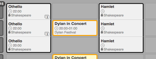 Yesplan doesn’t prevent you from overbooking a location, and you can assign more than the available resources to an event. However, Yesplan will mention this via an event conflict. An event with a conflict is an event of which the planning probably isn’t correct, according to the information that Yesplan has. A conflict also mentions the required information why there is a planning problem.