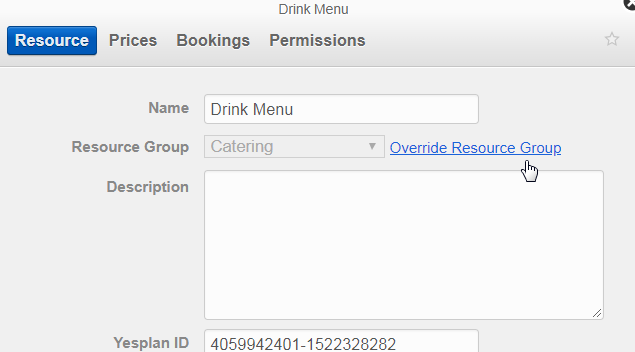 Yesplan automatically derives the resource group of the resource set from the resources that this set contains. But sometimes you want to change that resource group manually to something other than what Yesplan could derive automatically. You do this in the resource inspector on the “Resource” tab. Click “Override Resource Group” and select the desired option from the drop-down menu. You can always return to setting a group automatically by clicking “Revert to Setting Group Automatically” (this appears after you have overridden the group).