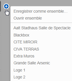 Lors de sa première connexion à Yesplan, un utilisateur verra sa partie de l’ensemble par défaut. L’utilisateur verra dans cet ensemble par défaut uniquement les lieux appartenant à son équipe principale ou à une équipe parent de son équipe principale. Un utilisateur peut également ouvrir son ensemble par défaut à partir du menu des lieux dans le calendrier des événements.
