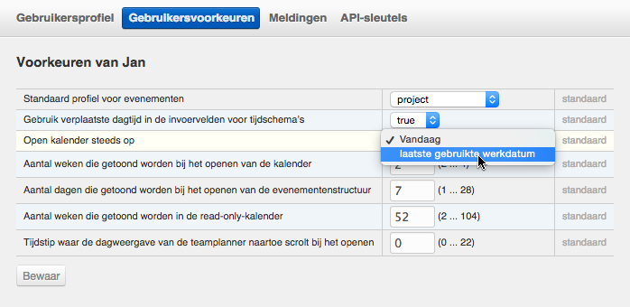 Par exemple, si vous passez du calendrier des événements à l’affichage par jour du Teamplanner, vous constaterez que cet affichage par jour s’ouvre à la date de travail. Jusqu’à présent, cette date de travail était réinitialisée à la date d’aujourd’hui à chaque démarrage de Yesplan. Désormais, vous pouvez choisir de retenir la date de travail à la fermeture de Yesplan, pour commencer à cette date la prochaine fois, plutôt qu’à la date d’aujourd’hui.