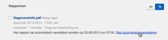 Si vous souhaitez conserver un rapport donné pour une durée indéterminée, vous pouvez l’indiquer pour chaque rapport. Il suffit de cliquer sur « Ne pas supprimer automatiquement ».