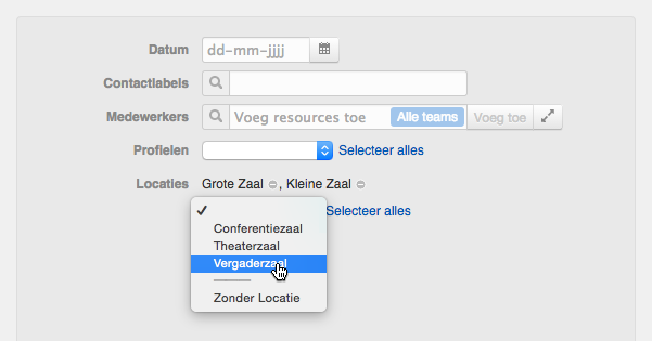 La date de travail est configurée chaque fois que vous sélectionnez un événement dans le calendrier, que vous changez de date à l’aide du sélecteur de date ou que vous sélectionnez une date ou une réservation dans le Teamplanner. Cela vous aide à conserver la même date de travail dans différents endroits au sein de Yesplan.