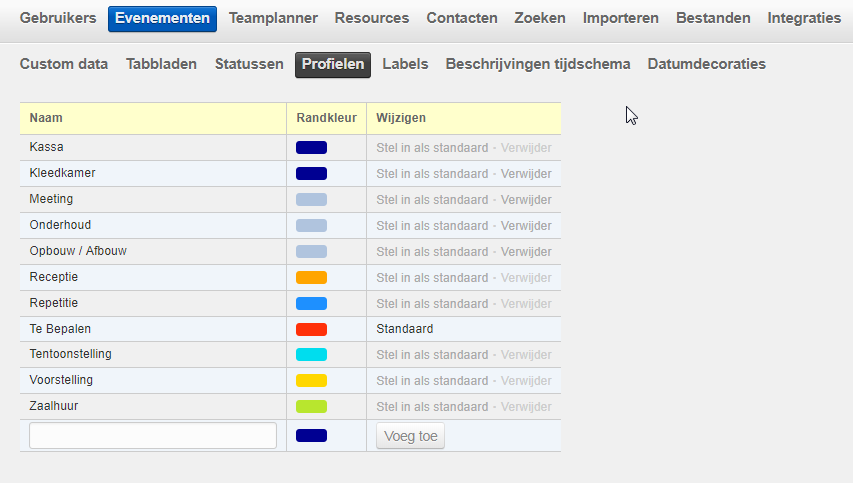 Je kan de profielen voor evenementen beheren in “Systeeminstellingen” > “Evenementen” > “Profielen”.