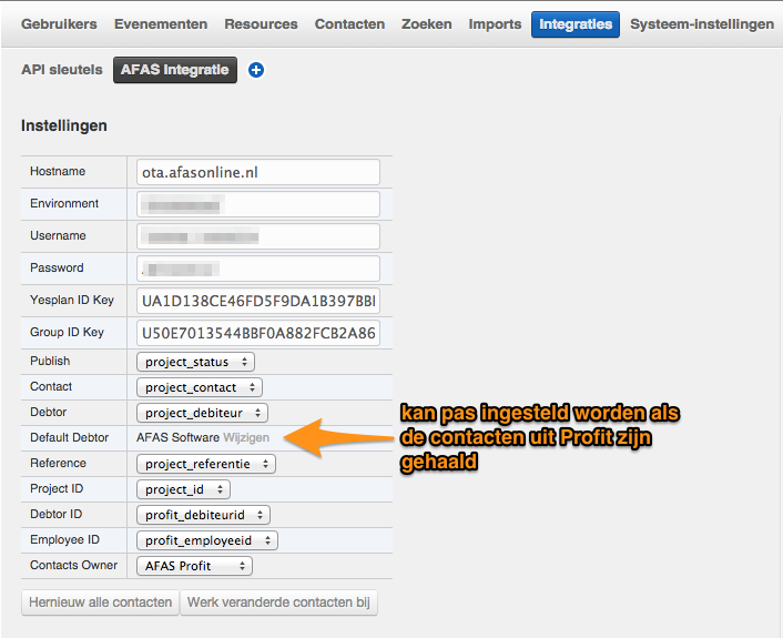 De instellingen voor Profit in Yesplan vind je onder “Systeeminstellingen” > “Integraties” > “AFAS”.