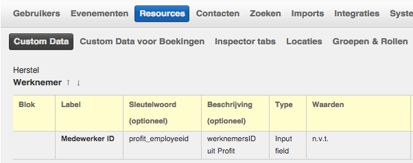 In de configuratie van de resourcegroepen en kosten moeten de gebruikte namen identiek zijn (let op, dit is hoofdlettergevoelig), anders worden ze niet herkend als Yesplan deze uit Profit ophaalt en kunnen ze niet correct gemapt worden.