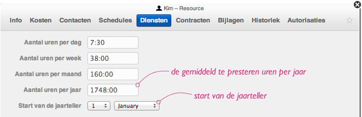Bij het aanmaken van een nieuwe human resource worden deze standaardwaardes overgenomen. Zo moet je deze waarde niet langer één voor één per persoon invullen, als die niet afwijkt van het meest gebruikelijke.