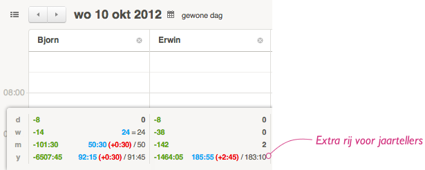 In de Teamplanner is er onderaan bij de tellers een extra rij toegevoegd die de totale werkuren toont per persoon over de duur van 1 jaar.