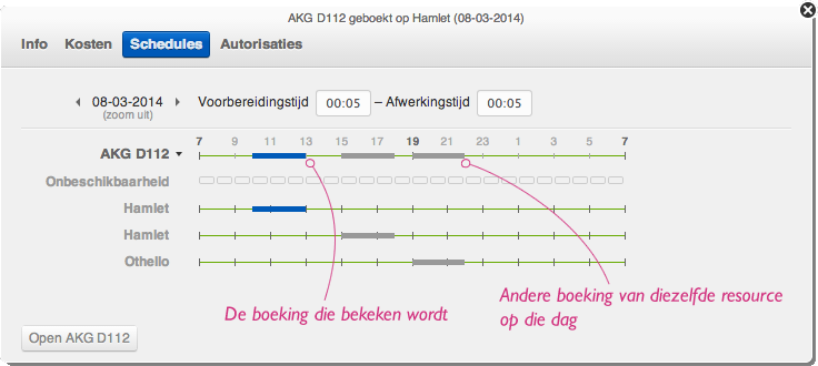 • In de schedules tab van de resource inspector worden meerdere boekingen van eenzelfde resource (op een of meerdere evenementen) nu verbeterd opgelijst, zodat steeds duidelijk is welke boeking je bekijkt.
