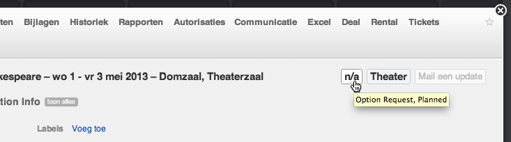 • group:statusses:optie: (Nieuw) Zoek alle evenementgroepen waarvan de status ‘optie’ bevat. Dit wil zeggen dat minstens één evenement in die groep deze status heeft.