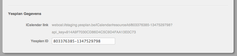• de Yesplan ID van het evenement, de resource of het contact waarop het toegepast wordt